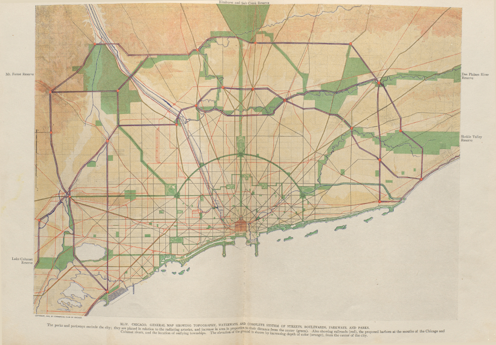 Scales of Topography, Burnham and Bennett’s Plan of Chicago, 1909.
