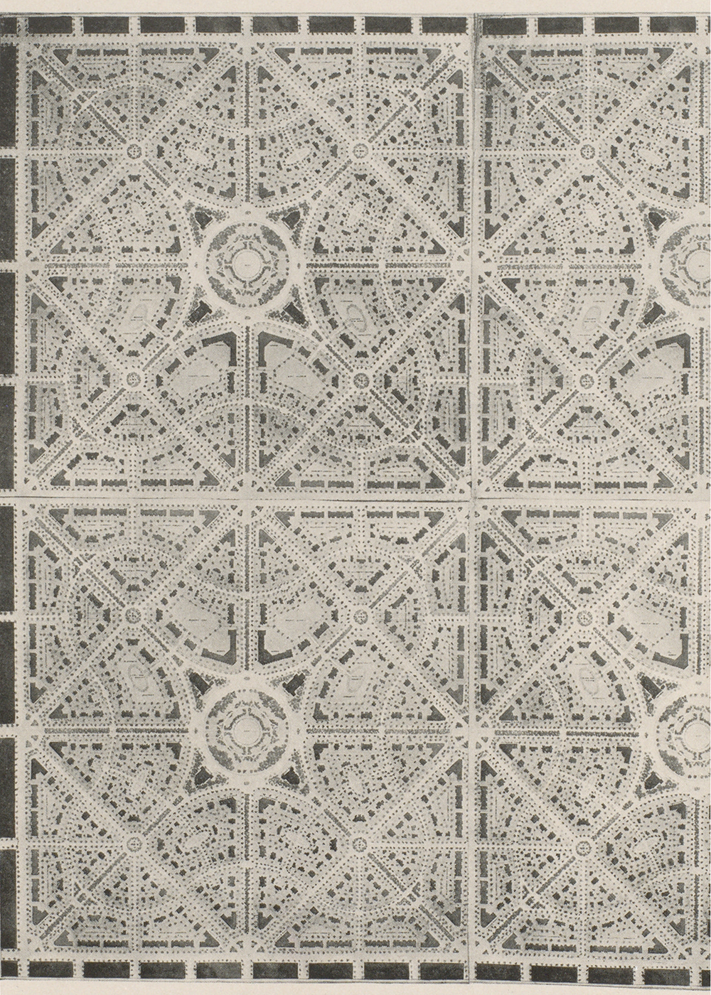 Louis H. Boynton’s snowflake urbanism, “Plan Showing Possible Repetition of Quarter-Section Unit,” 1913.