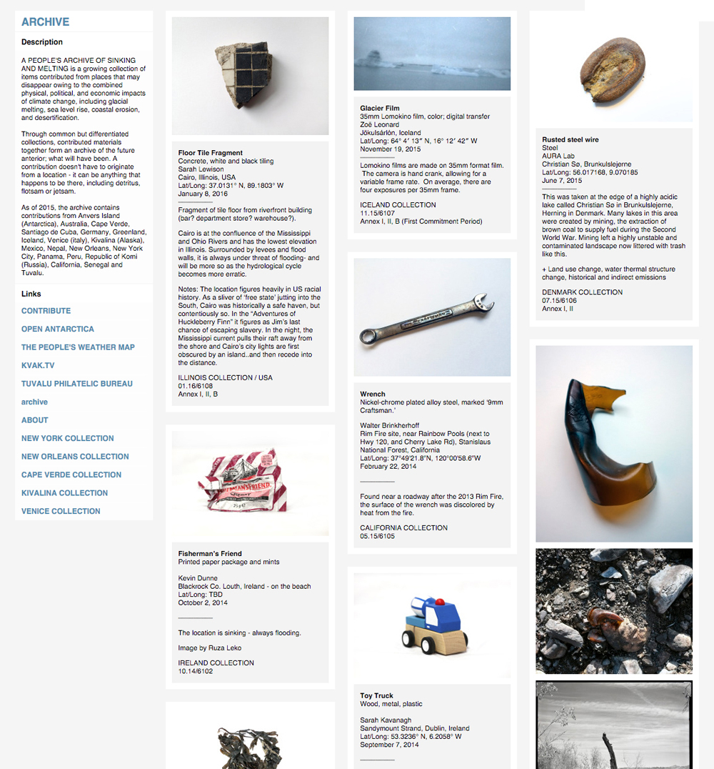 Website, A People’s Archive of Sinking and Melting, Amy Balkin et al., 2011–present. Image courtesy of the artist.