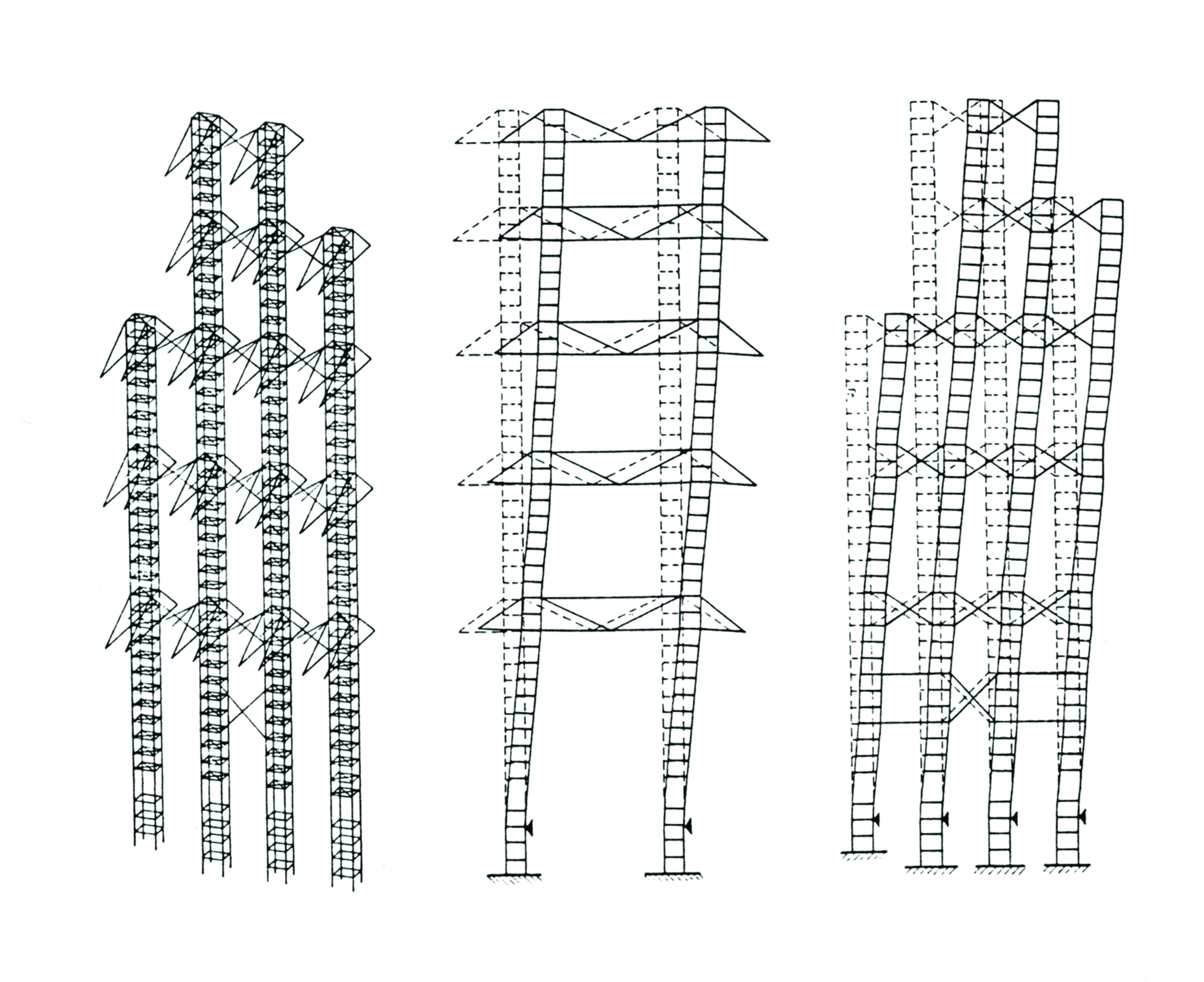Superstructure analysis computer model for the Hong Kong and Shanghai Bank Headquarters, Ove Arup & Partners and Foster Associates. Courtesy of Arup.