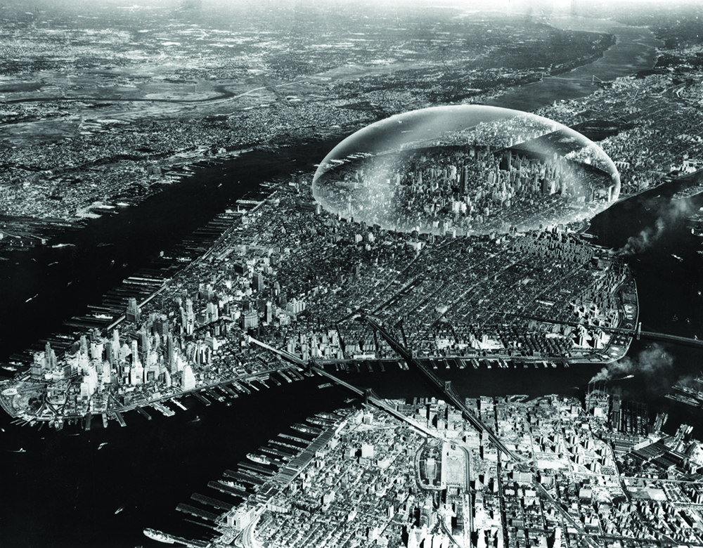 Project for a geodesic dome over Manhattan, R. Buckminster Fuller, 1960. Courtesy of the Estate of R. Buckminster Fuller.