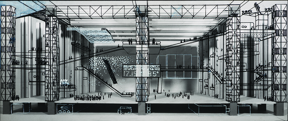Interior perspective of the Fun Palace project, Cedric Price, 1964. © Cedric Price fonds, Collection Centre Canadien d’Architecture / Canadian Centre for Architecture, Montréal.