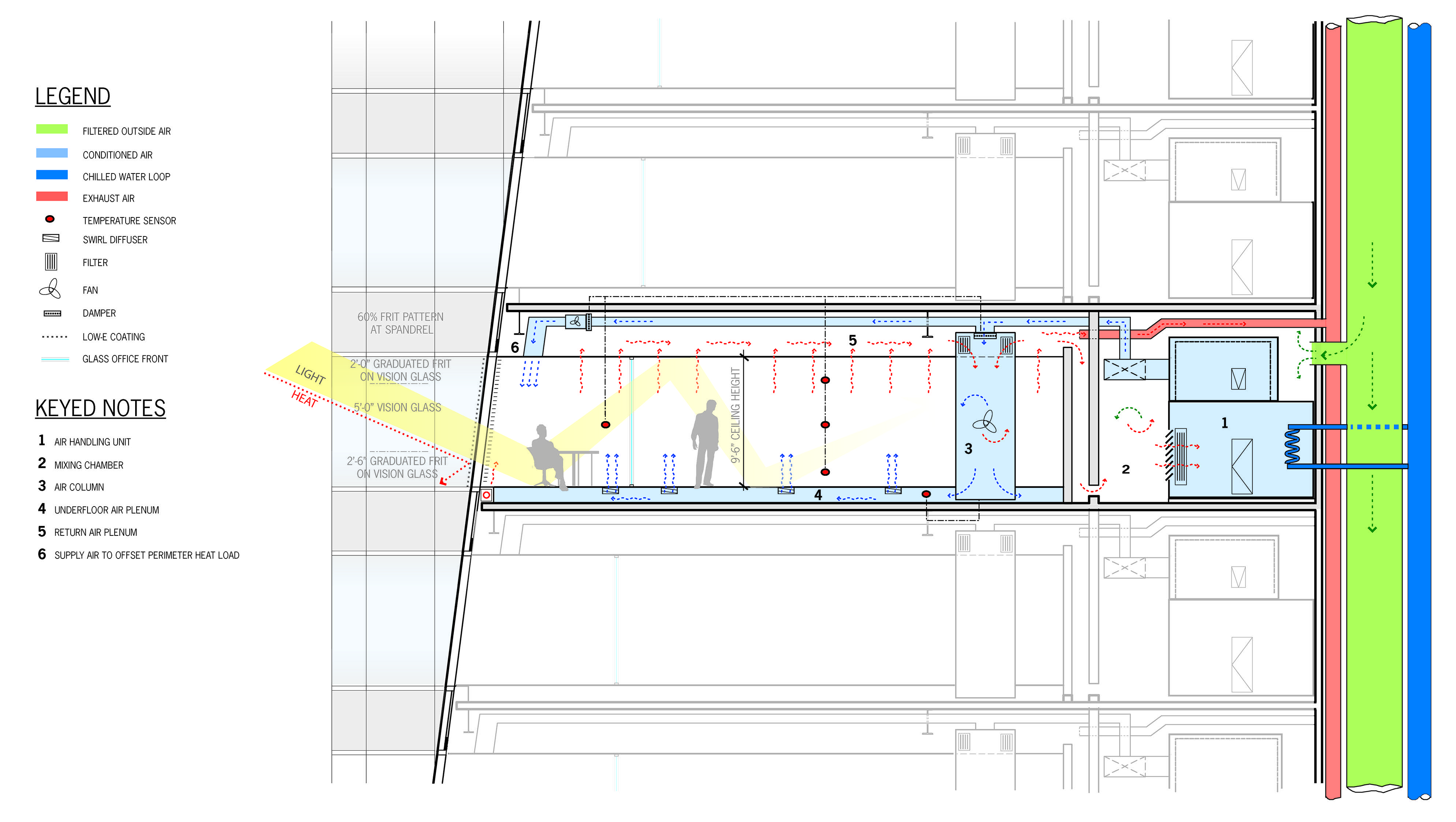 Section of a typical office floor at the Bank of America Tower [One Bryant Park], COOKFOX Architects, New York, 2010. Courtesy of COOKFOX Architects.