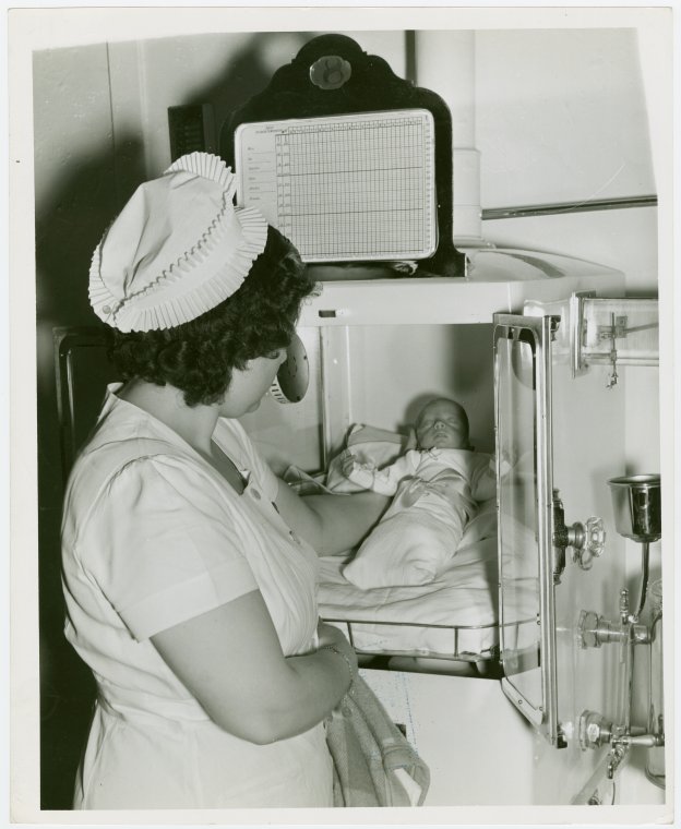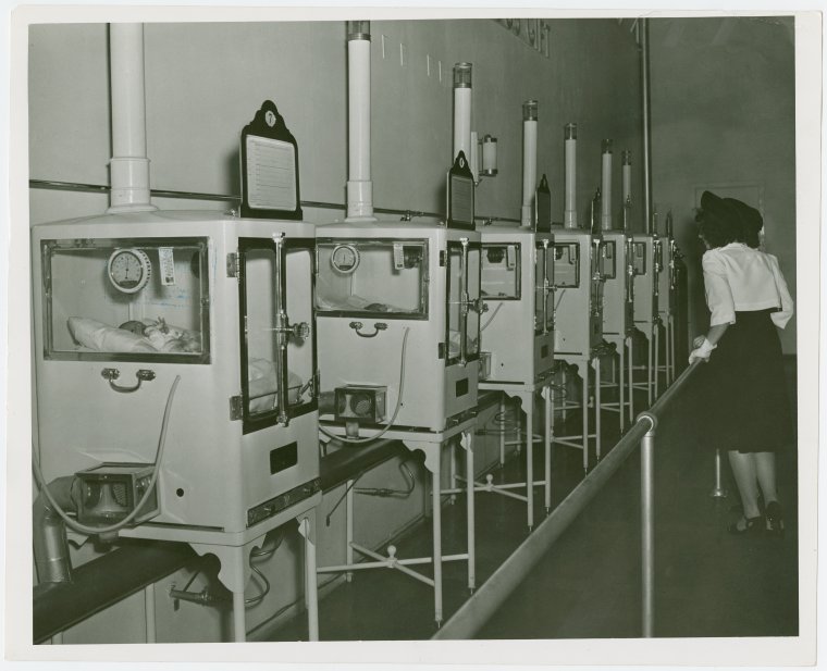 One of these machines alone would never save a child. One must know how to care for such an infant. They are taken out of the incubators every three hours, covered in towels, taken into the nursery where they are changed and fed. They must be fed on mother’s milk in order to survive. Science has not succeeded in replacing the mother here. 8