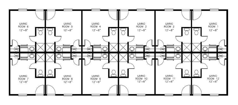 A 2,280 square foot, twelve-room man camp module. Manufactured by CLH Commercial Buildings.