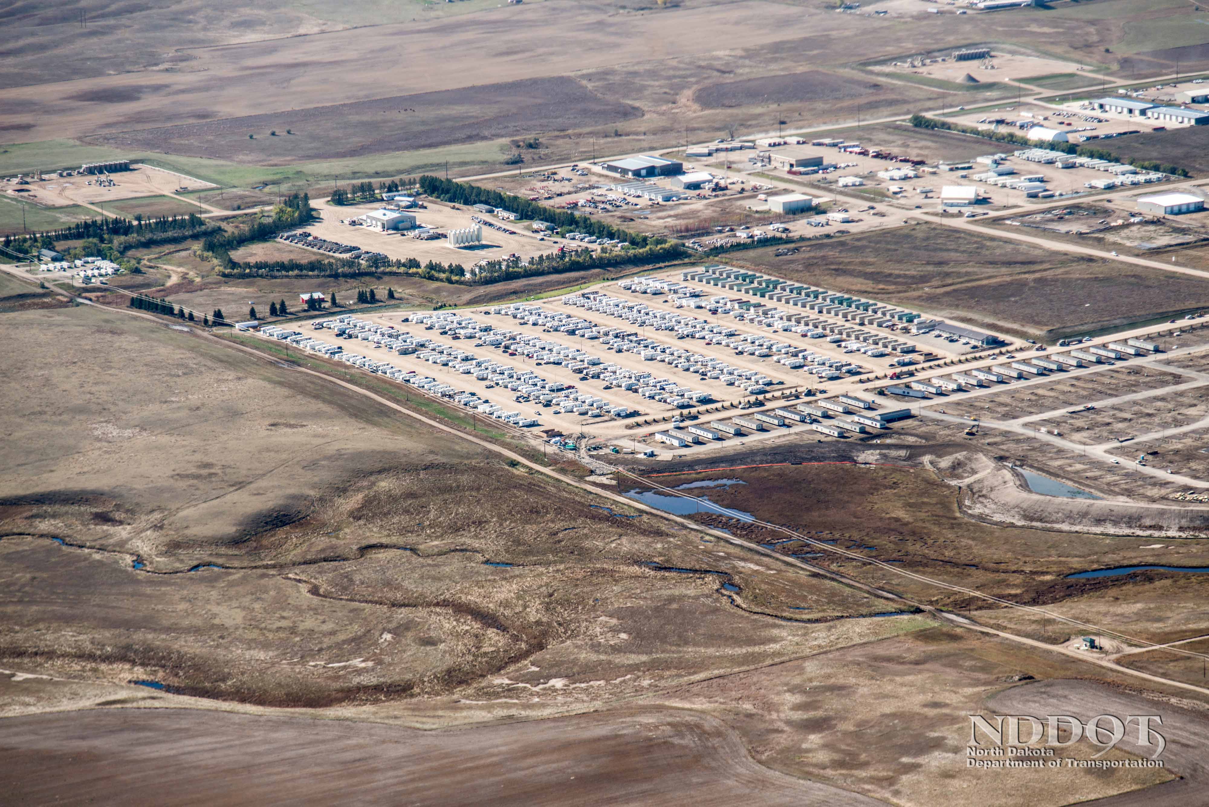 Man camp located near the US 85 Truck Reliever Route in Williston, ND. Photograph by the North Dakota Department of Transportation.