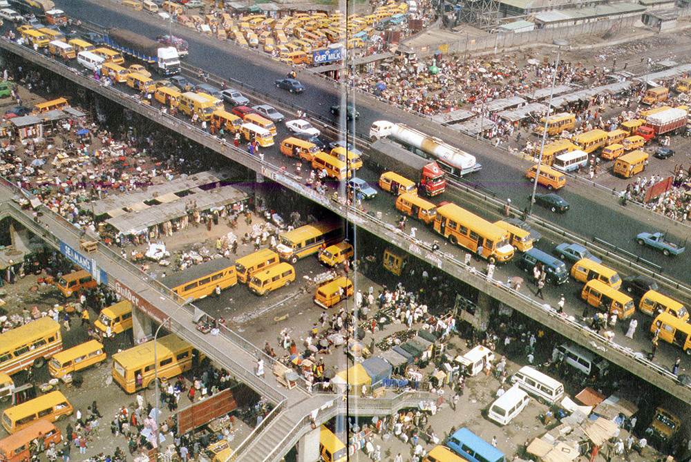 Traffic in Lagos: the future of cities? Spread from Mutations by Koolhaas et al. and published by ACTAR, 2001.