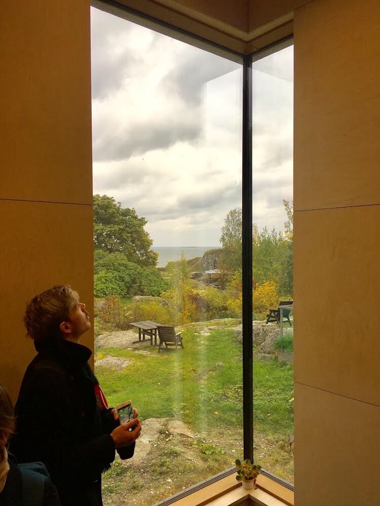 Matthew Kabala examines the full-height glazed corner of a housing unit at Suomenlinna Prison. Courtesy of Impact Justice.