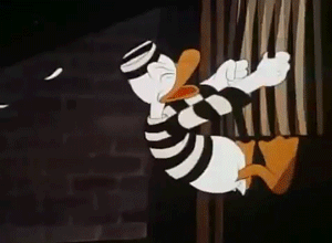 This clip from Donald’s Crime—a 1945 animation in which Donald Duck is imprisoned for stealing $1.30 from Huey, Dewey, and Louie’s piggy bank—is included in Frank Gehry: Building Justice to distinguish the reality of the prison from its Hollywood versions.