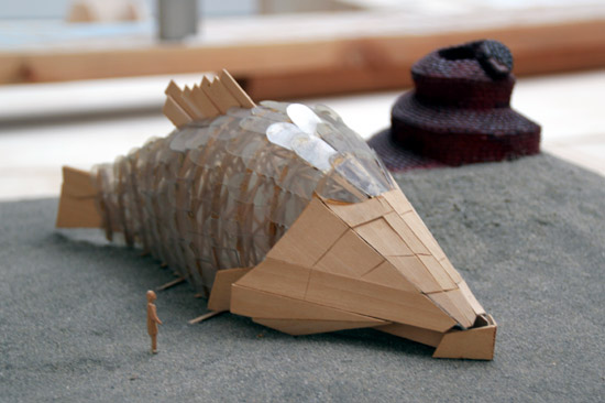 Frank Gehry has not, yet, been asked to design a prison, and so he has no signature ready to scrawl on the type. However, contributing to a 1983 exhibition at Leo Castelli’s SoHo gallery, Follies: Architecture for the Late Twentieth Century, he presented a folly named “The Prison”: a zoological scheme for a private estate that included a pavilion in the shape of—you might have already assumed—a fish.14 He’s made fish-shaped restaurants, public artworks, and lamps, but his go-to Piscean figure was unsuitable for the penitent. Rather, the prison in this proposal, set apart in the landscape from the glassy structure of the fish, was imaged as a snake in brick, coiled in a Philip Johnson–like play of opposites, as expressions of freedom and confinement.15