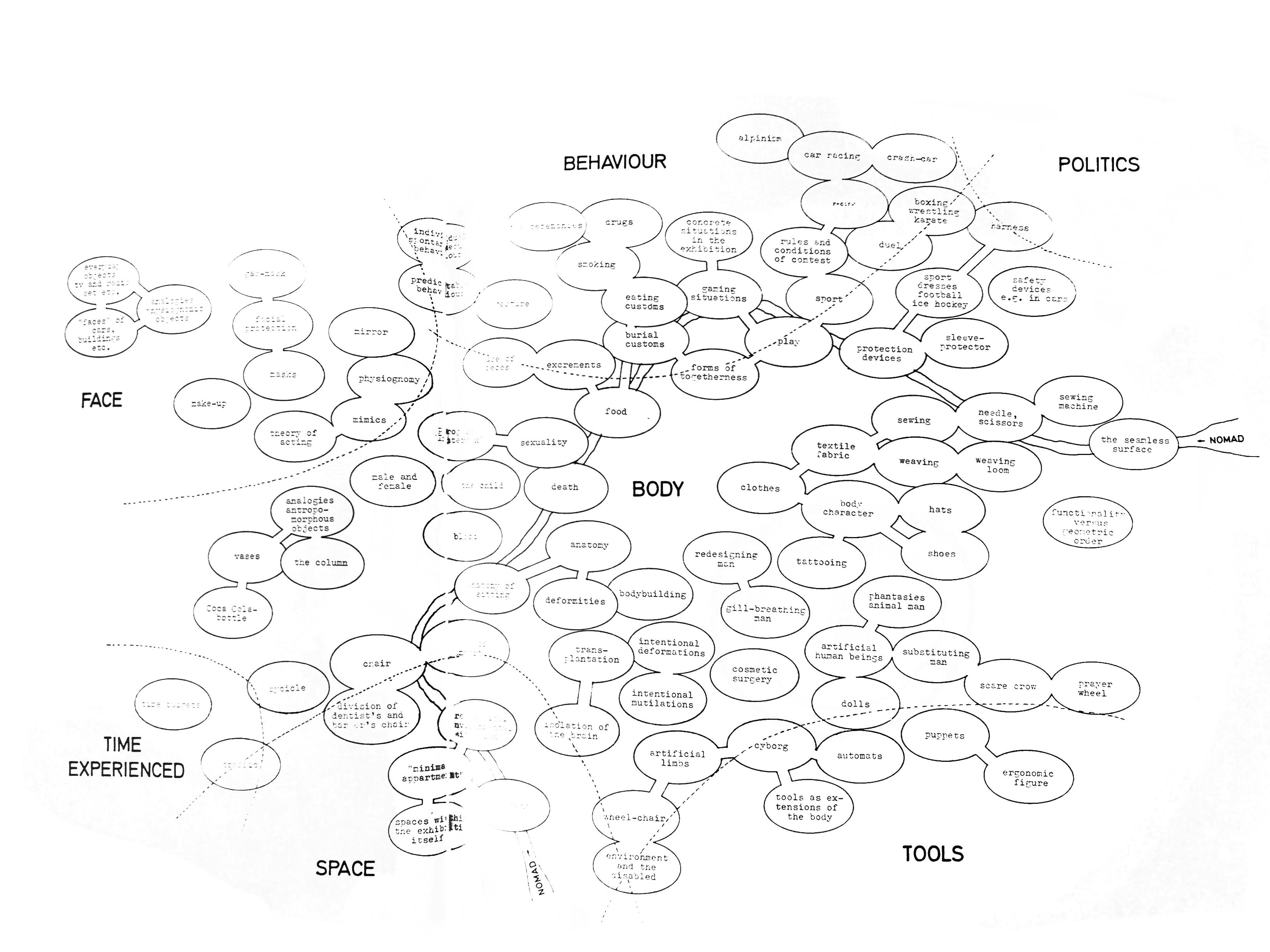 Hans Hollein, Arrangement of Interrelated Subjects, originally published in MAN transFORMS: Konzepte einer Ausstellung [Vienna: Locker Verlag, 1989]. © Private Archive Hollein.