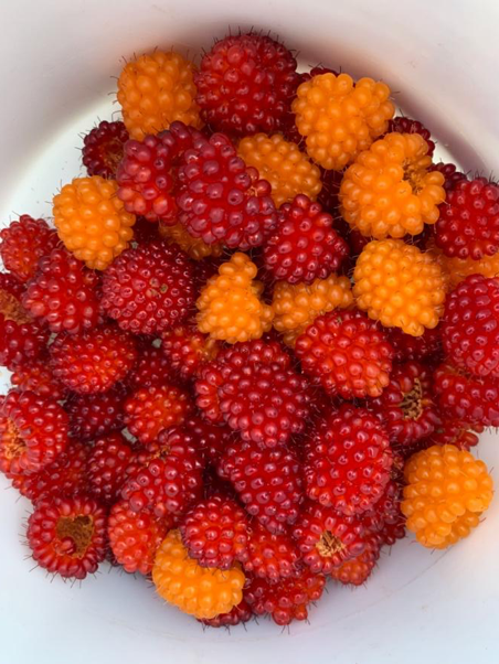 I pinch several oats between my fingers, crumble the small seeds and bring the plant matter to my nose. I inhale the scent of summer river water, quick and deep, banking left and right, gray-blue with glacier silt. I inhale memory, picking salmonberries on a steep incline as a kid. Fat, dimpled berries plopping heavy into an empty ice cream bucket, two bikes ditched on the road below. Reaching high for that ever-next orange berry, stretching across pushki patches, I can feel their green hairs tickle and scratch. Later, pink and red rashes would rise on my irritated arms and legs as I drowned my berries in milk and sugar, eating them whole, little green bugs and all. Now, I rub the crushed oats between my fingertips, sprinkling them onto the small lawn behind my apartment where I live in Ho-Chunk country. I’m late introducing myself. I offer dried pushki seeds from home as a simultaneous hello, I’m sorry, and thank you. I am a stranger here, and I hope that my tardiness is forgiven.