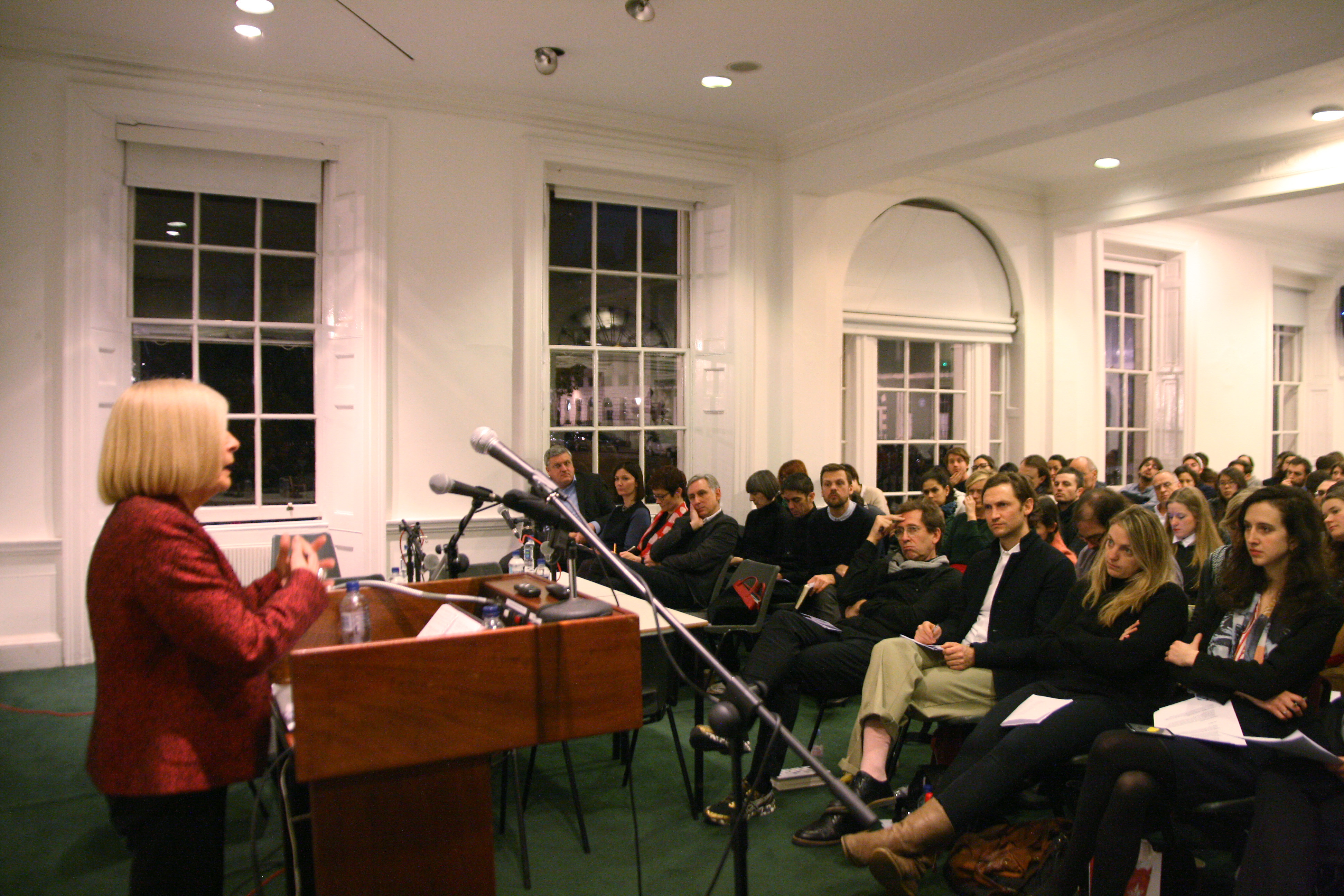 Chantal Mouffe’s subsequent talk and the group discussion that followed constructed a growing consensus on architecture’s relation to politics, with Weizman’s presentation as the noticeable exception. In addressing architecture’s role in politics, Mouffe called for continual “disarticulation,” or analytical critique, of how cultural practices construct hegemonic order, and expressed appreciation for Martin and Aureli’s contributions on this basis. She also reminded the audience that “disarticulation” must also be followed by “re-articulation,” or the construction of new, inevitably all-encompassing orders, as with Whiting’s insistence on the projective. The argument that hegemony cannot be escaped, but only critiqued and reconstructed, is key to the sense of confined radicalism that pervaded the event. In their own terms, Martin, Aureli, and Whiting all share this double bind of disarticulation and re-articulation—the honest assessment of late capitalism’s stranglehold on cultural production and the struggle to enact new conditions within that behemoth. They also share Mouffe’s interest in private spaces as constructions of power relations over the more idealist public space of appearance. Perhaps it was a general atmosphere of British politeness, or a shared respect for Mouffe’s long-standing influence, or the lack of hotheaded disputes, but the collective conversation maintained a sense of cordial agreement—an ironic turn, given the repeated statements about how consensus can serve as a tool of hegemony. This emerging consensus was that architecture participates fully in the construction of late capitalist hegemony and can put forward incremental change only through the critique and reconstitution of that hegemonic order. Architectural agency, then, lies within liberal democratic nations, and within the types of private buildings that architects are still allowed to design—some housing and commercial offices, and a dwindling number of institutions.