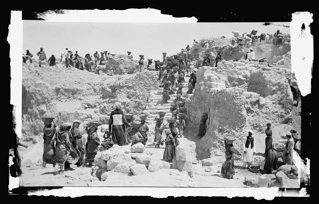 Hundreds of Palestinians, including women and children, excavate Sebastia for Harvard University. Photograph courtesy of the Matson Collection at the Library of Congress.