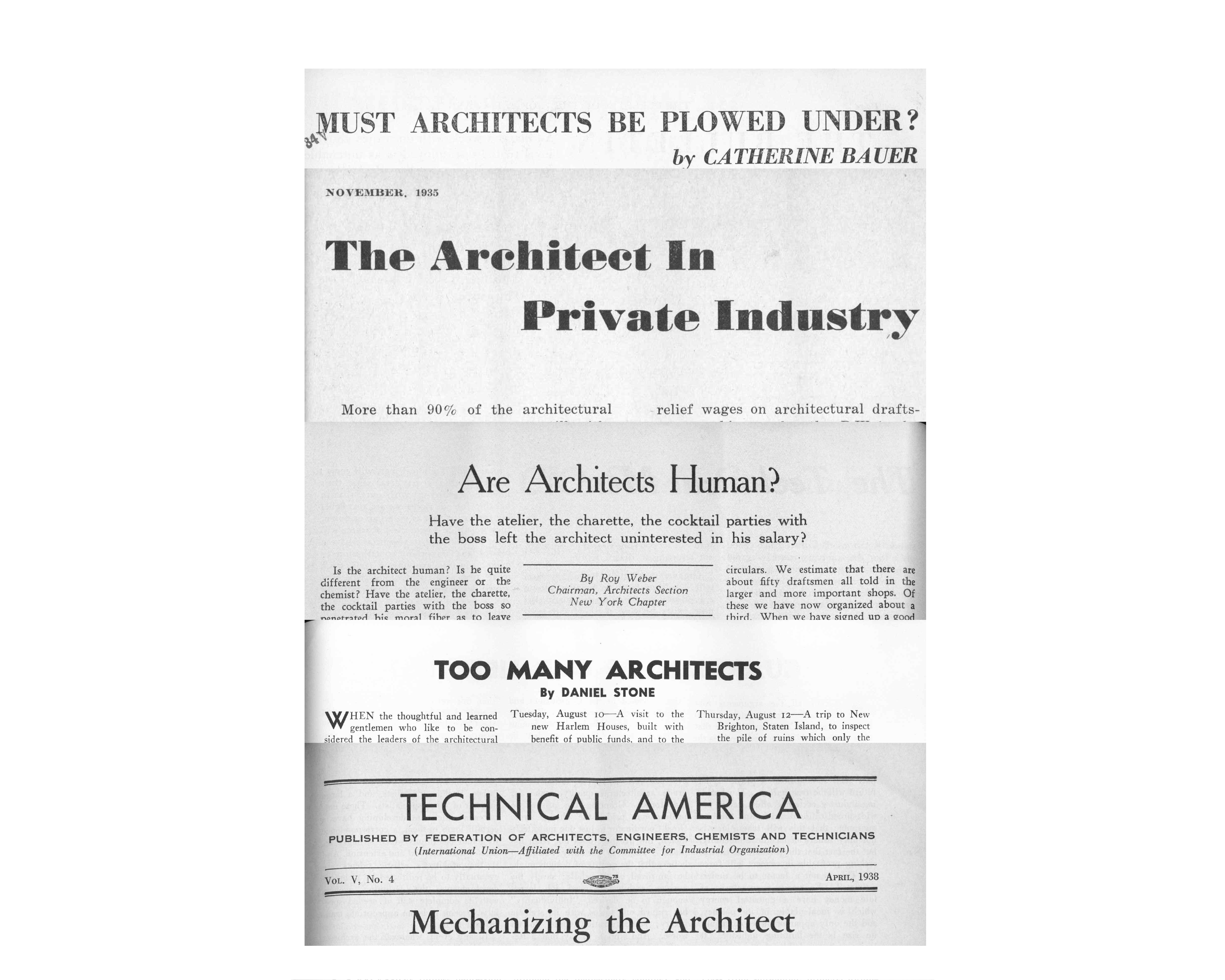 18. Roy Weber, “Are Architects Human?” Bulletin of the Federation of Architects, Engineers, Chemists, and Technicians 4, no. 6 (June 1937): 10–11.