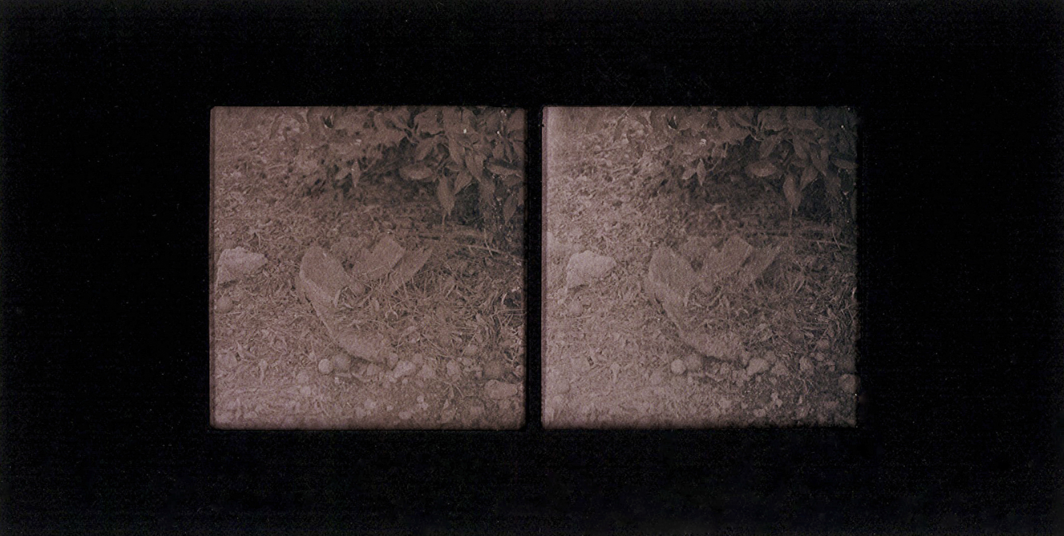 Many of the photographs in this essay were produced during our fieldwork in Palestine in 2023. They depict intimate encounters with cacti across sites of villages destroyed and depopulated in 1948 to contemporary farms and urban spaces in the West Bank. Printed with cochineal that populates these sites, these stereoscopes reference a nineteenth-century image-making technique that creates a three-dimensional effect when looking through the stereoscopic viewfinder. By placing two skewed images of the same scene side by side, the brain fuses the images together, creating a sense of depth and distance, tricking the viewer into an illusion of reality.11