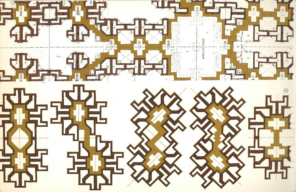Barrio Gaudí’s floor plans, showing its different housing typologies and possible aggregations. Image from Ricardo Bofill, Hacia una formalización de la ciudad en el espacio.