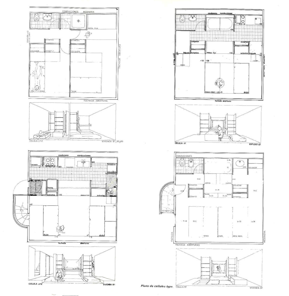 The difference between early projects from Taller de Arquitectura and those that served as the studio’s references—including the work of Archigram, Habitat 67, and theoretical projects like Friedman’s Spatial City—is that in Taller’s built projects there was no infrastructure into which prefabricated units were placed.4 5 6 Instead, their projects were built under extremely low-tech conditions, a fact that distinguishes them from Metabolist and other more technologically enthusiastic approaches.7 That fact, among other reasons, led the idea of the system to prevail over how it was materialized.