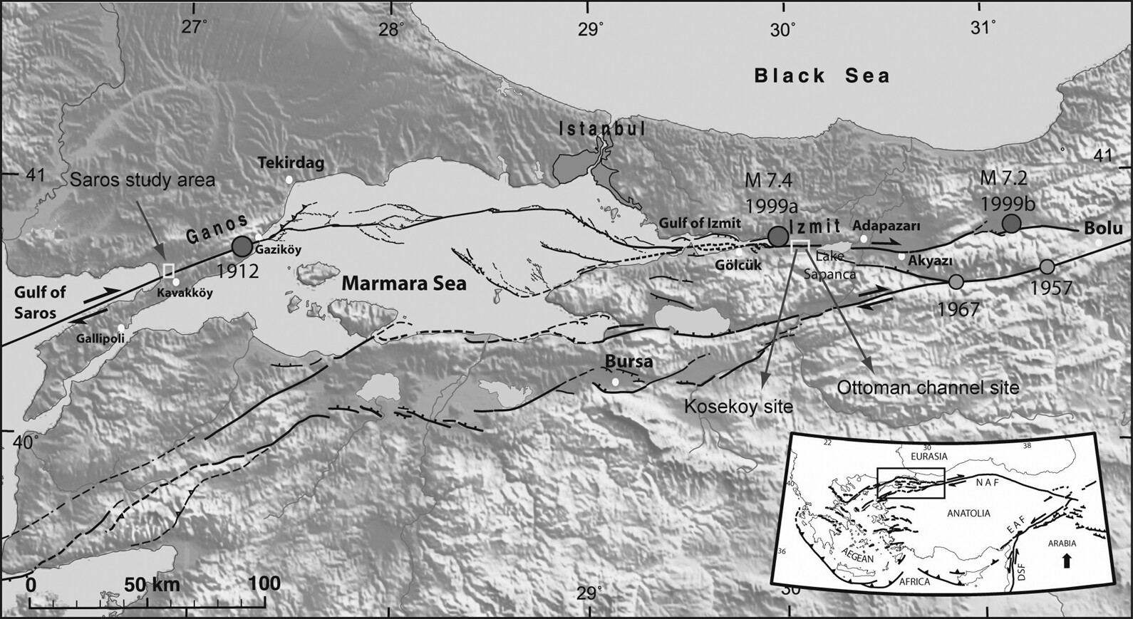 Along the edges of Turkey run the North, East, and West Anatolian fault lines that geologically position the country in a seismic hazard zone. Beginning at the Karlıova Triple Junction, where the Arabian, Eurasian, and African plates converge, the North Anatolian Fault line stretches toward the Black Sea region and ends at the Gulf of Saros, where it meets the Aegean Sea. Its bow-shaped western tip lies just twenty kilometers south of Istanbul. Within this zone, earthquakes form a special kind of history, through which immense loss and dislocation become reference points in time, unresolved and lingering. Different cities at different times carry this recurring memory.
