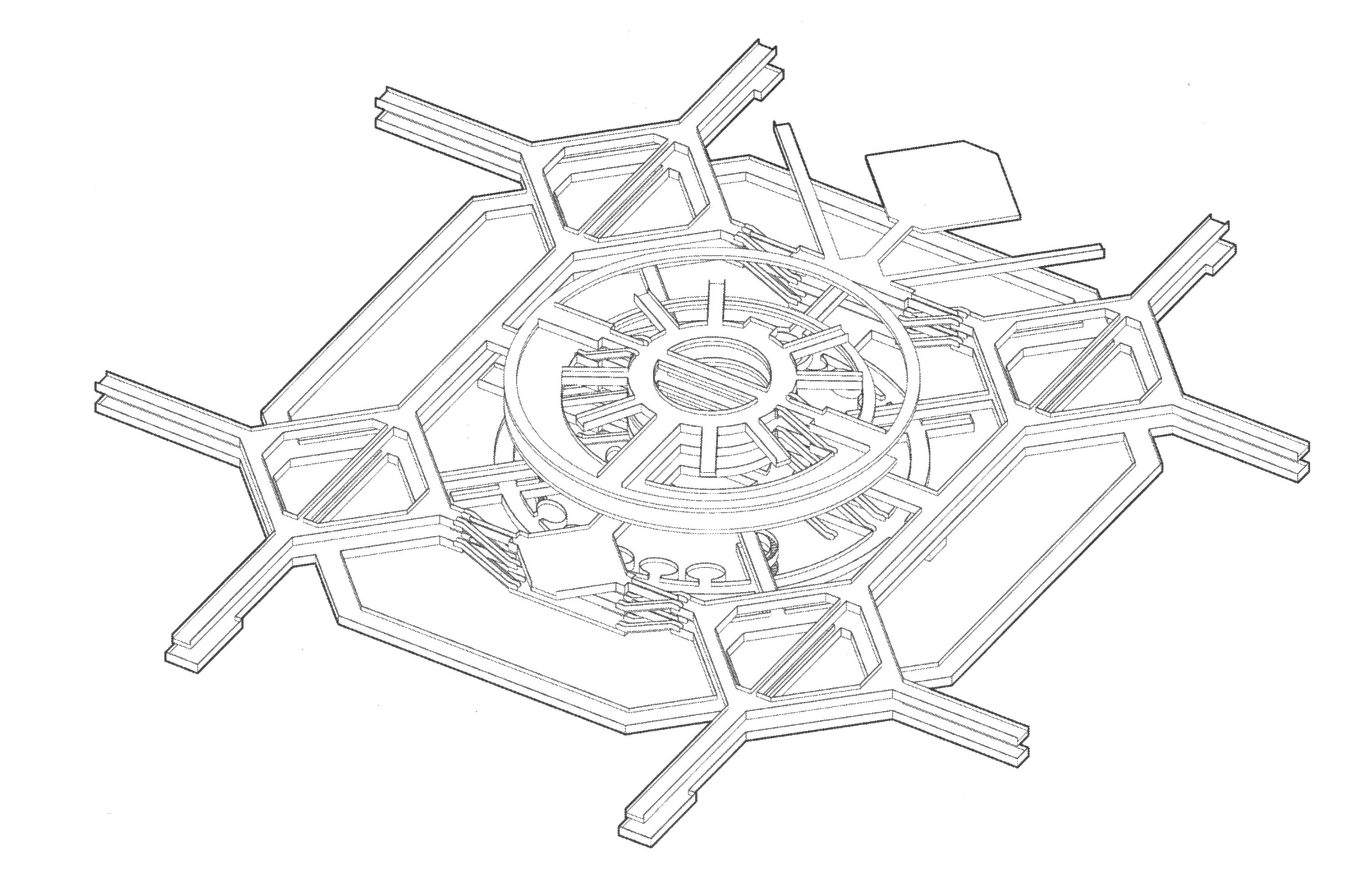 As I walk, the core is always on my left. The geometry renders it magnetic. Walkways are concentric, not stacked. They are distinct orbits. When the walkways intersect a perpendicular bridge, leading across to a lobby or a bank of escalators, or into the core itself, my pace slows. Looking ahead as the path curves and curves and curves, it is like occupying one point and all points, spread across the circle in full, then spilling out at its intersections. My emotional state here is hard to describe; there is a calm and a continuity, but with a quiet terror at its edges. I wonder if this sensation is what Portman meant when he said, “I think it’s beautiful.” Maybe this isn’t what he had in mind at all; maybe it was. I walk for a while—several laps.