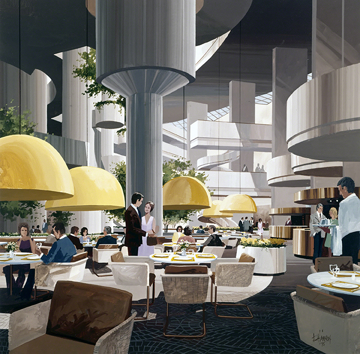 Portman was fully aware that he was in the business of producing hallucinatory effects. Nicknamed by one of his business partners “The Marijuana Kid,” he said of the Hyatt Regency in Atlanta, “I wanted to explode the hotel, to open it up, take the elevators out of the walls and let them become an experience in and of themselves, let them become a giant kinetic sculpture.”15